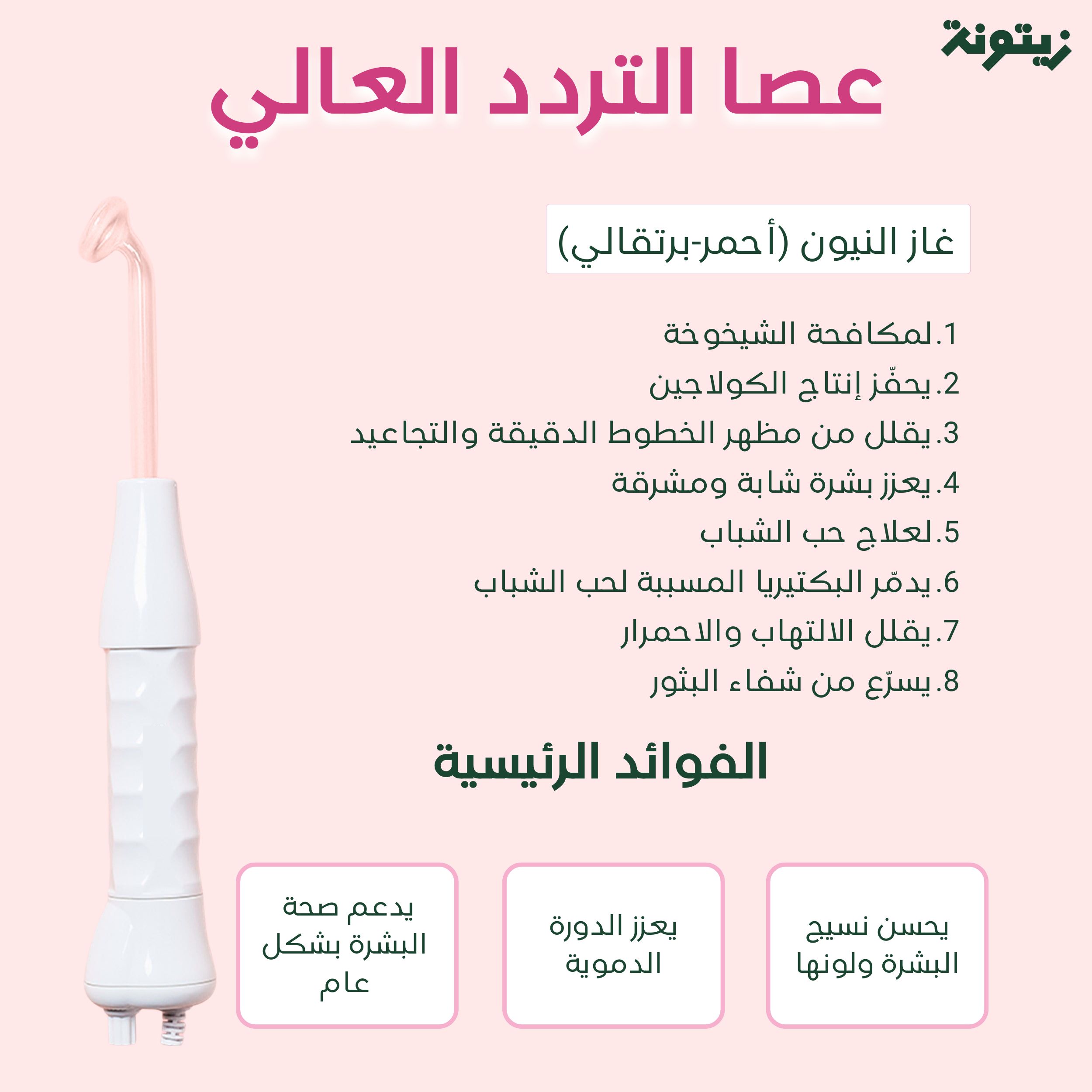 عصا التردد العالي خطوة ذكية ضمن روتينك اليومي، لأنها تعزز امتصاص الكريمات والسيرومات بعمق داخل البشرة لتعطيك أقصى نتيجة وأفضل فائدة من منتجاتك المعتادة